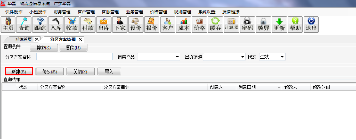在系统设置下点击“分区方案管理”;进入分区方案管理页面。