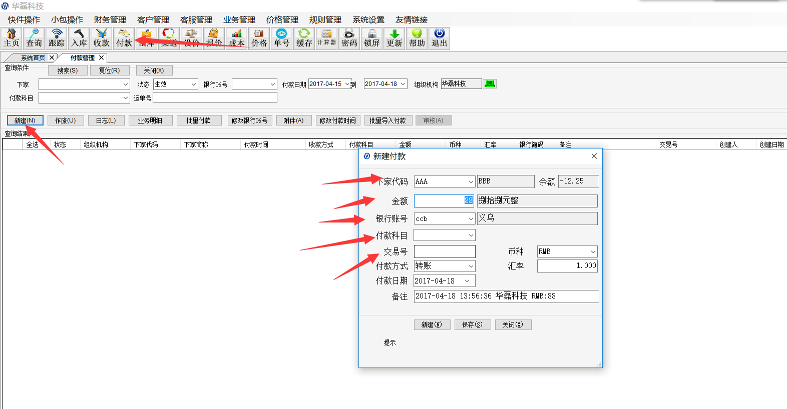 华磊系统如何添加客户收款和付下家的款