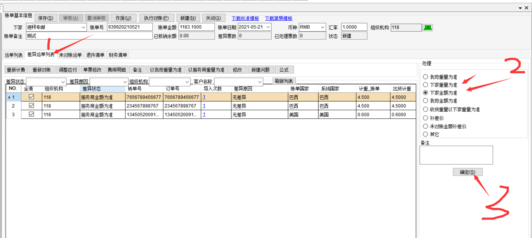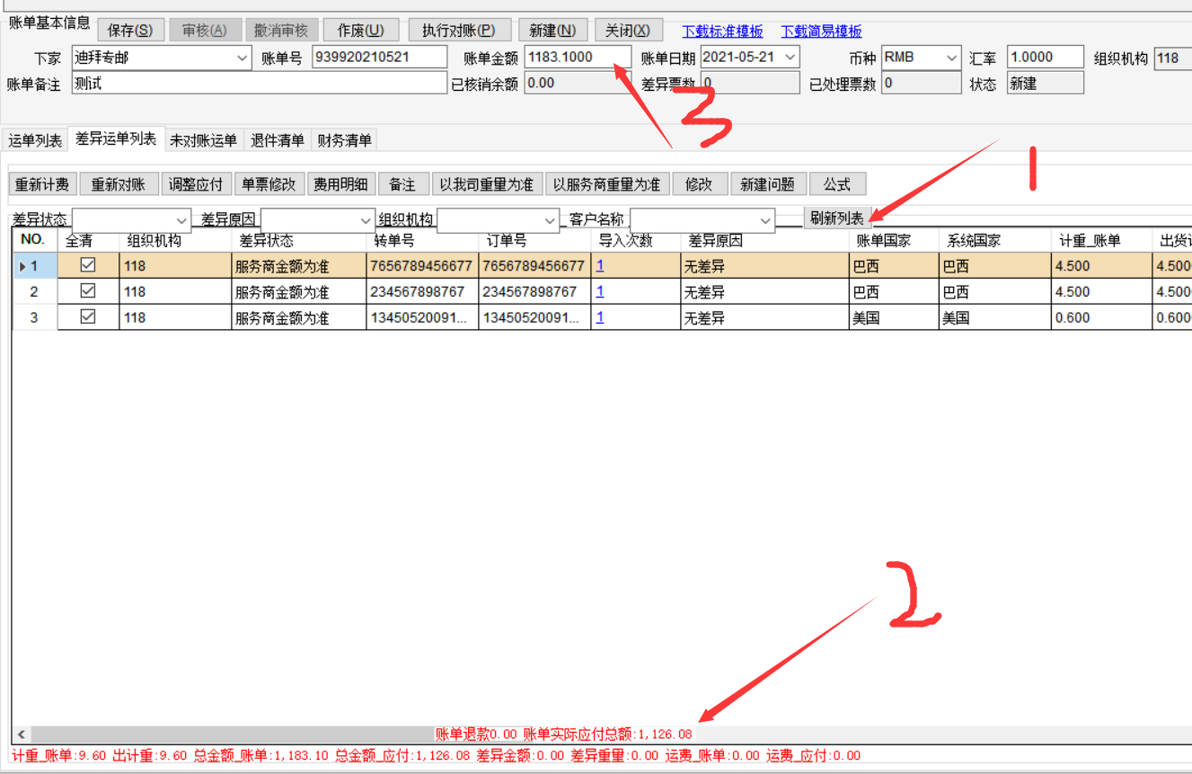 华磊系统——财务管理——下家账单对账———先下载对账模板做好表格,把下家给你的账单复制数据到我们的模板上面。 2,新建选下家——生成账单号(一天多个的可以修改)———备注——点保存————浏览表格———保存————执行对账 3查看差异列表————(有问题的和下家校对)————选中————选对应的情况————保存 4,刷新列表,会显示该账单的应付总金额。(如果是存在多次对账的,只能单独填写对应的实际应付金额) 5.付款给服务商有两种方法, 方法一,直接在付款图标里面新建一笔总的金额,这种方式不关联单号。 方法二,在财务管理,下家批量付款,找到对应对过账的单号,勾选付款对应的金额。
