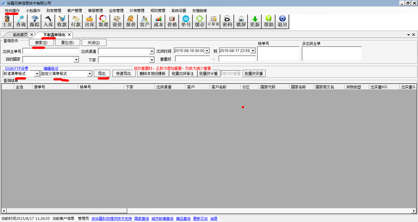 快件操作——查询——下家清单导出