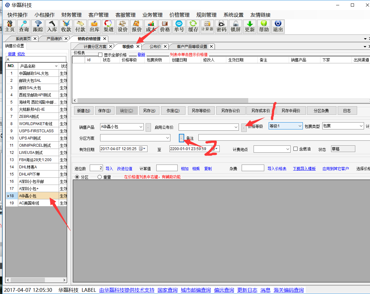 先刷新一下这这里两个按钮 如果是有不同的分区杂费的,设置在下面这个位置,公布价带过来的杂费要进来保存才生效,杂费可以复制粘贴进来。如果是杂费要打折的,可以全选,乘以折扣。杂费只能是这个价格表草稿状态才能修改。