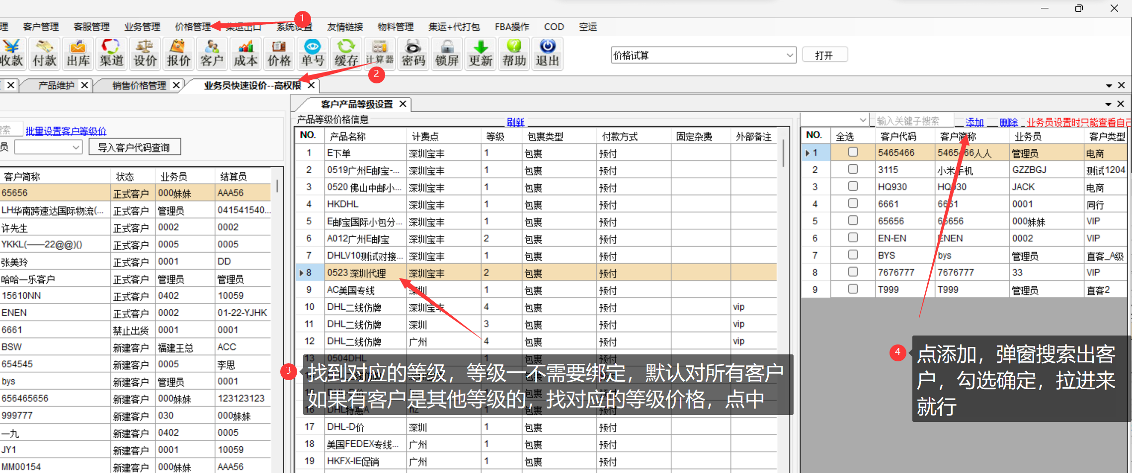最后一步;把对应的等级价绑定的对应的客户;等级一默认对所有客户,不用绑定等级一,其他等级的单独绑定