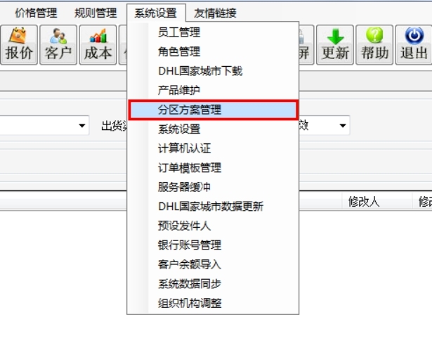 在系统设置下点击“分区方案管理”;进入分区方案管理页面。