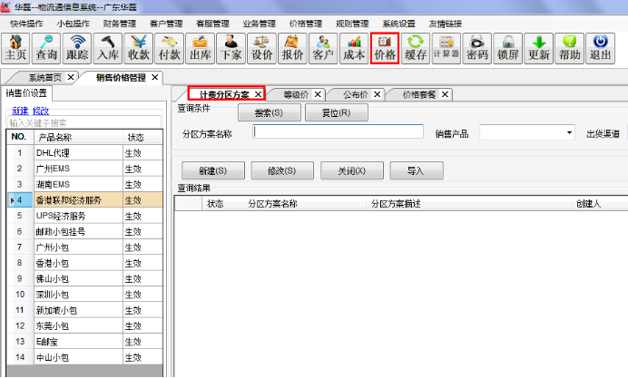 在快捷栏点击“价格”即可看到“计划分区方案”选项