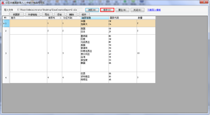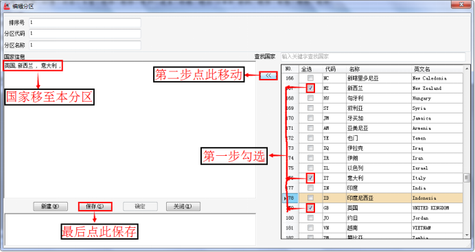 假设1区的国家有:英国、意大利、新西兰;见图操作。