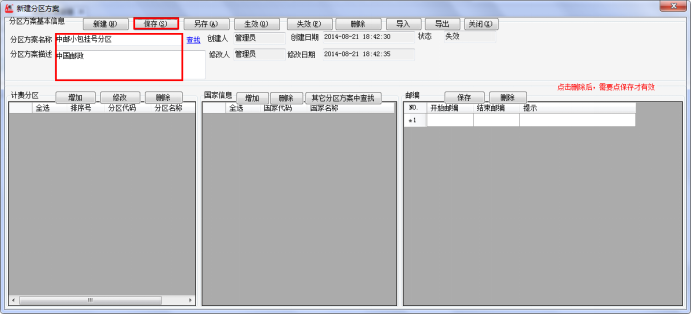 填写名称和描述后点击“保存”,才能开始计划分区。