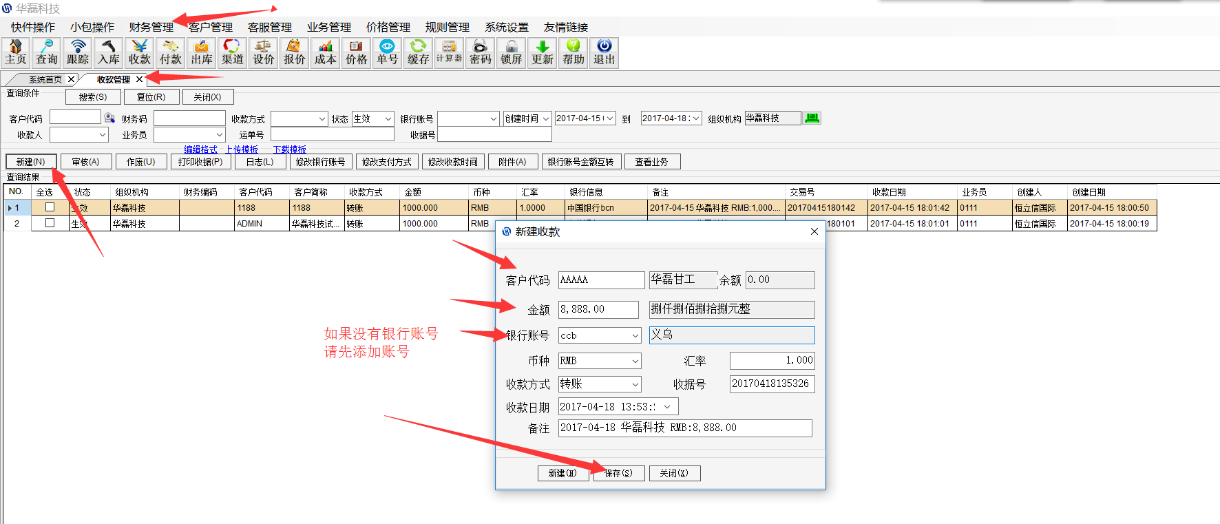 华磊系统如何添加客户收款和付下家的款