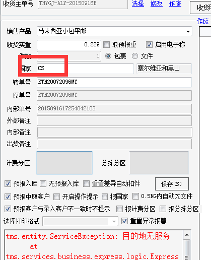 如不包含,则入库时提示无服务。