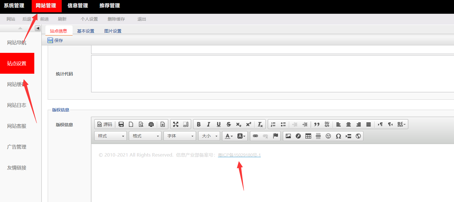如果修改网站备案号和备案链接